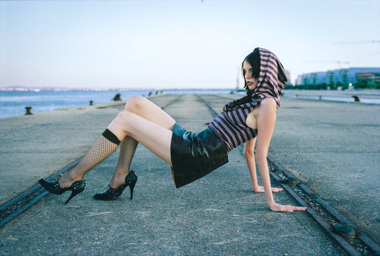 Spiky leather miniskirt